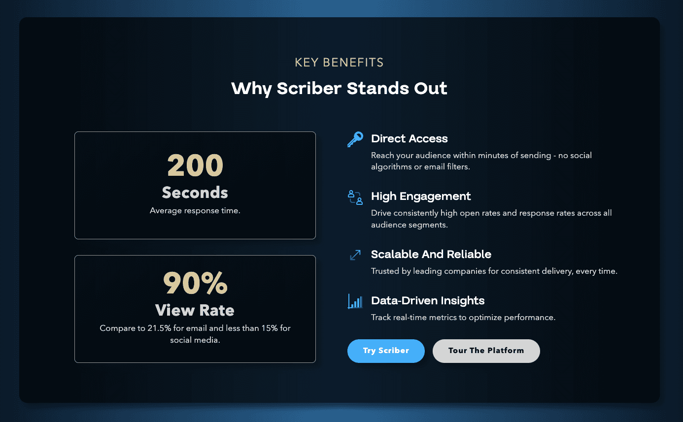 Consider this key benefits statistics section we developed. Instead of cluttering the design with unnecessary graphics, it uses clean data visualization to communicate key information effectively:
